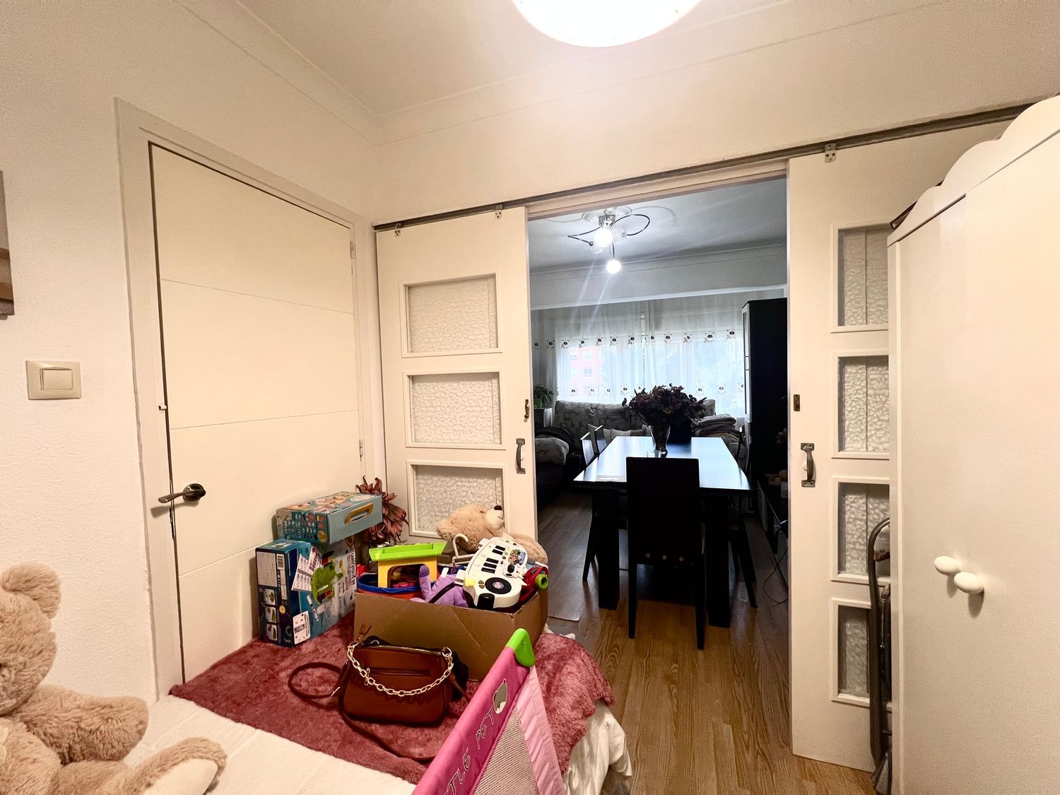 - Doble puerta corredera acristalada en veneciana, además de puerta independiente con acceso desde distribuidor.